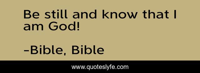 This page presents the quote "Be still and know that I am God!". Author of this quote is Bible, Bible. .
