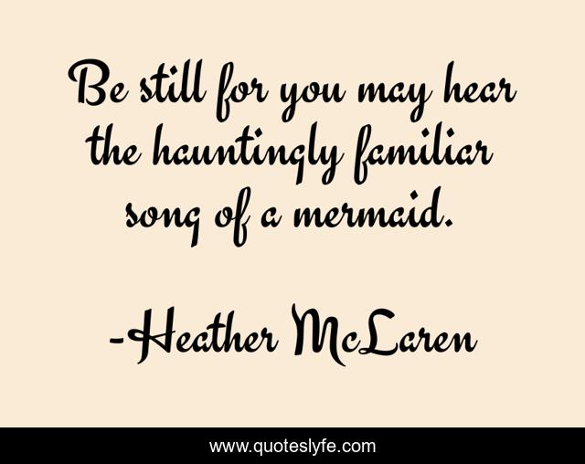 This page presents the quote "Be still for you may hear the hauntingly familiar song of a mermaid.". Author of this quote is Heather McLaren. This quote is about ya, fantasy,.