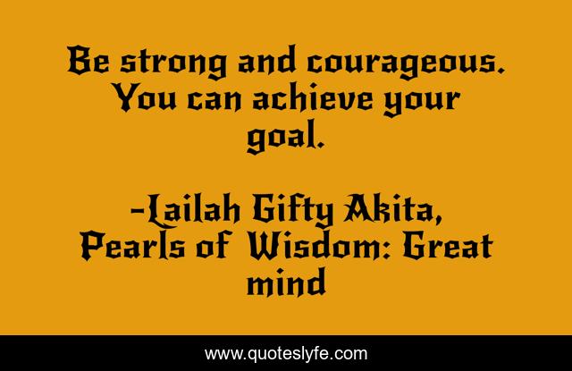 "Lailah Gifty Akita, Pearls of Wisdom: Great mind Quotes." Quoteslyfe.com, 2025. Fri. 05 Dec. 2025. <https://www.quoteslyfe.com/quote/Be-strong-and-courageous-You-can-achieve-91877>.
