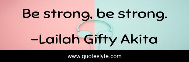 This page presents the quote "Be strong, be strong.". Author of this quote is Lailah Gifty Akita. This quote is about overcomer, motivation, strength,.