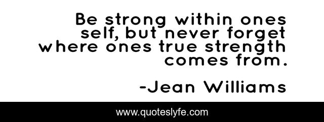 This page presents the quote "Be strong within ones self, but never forget where ones true strength comes from.". Author of this quote is Jean Williams. This quote is about enthusiasm, spiritual, inspirational,.