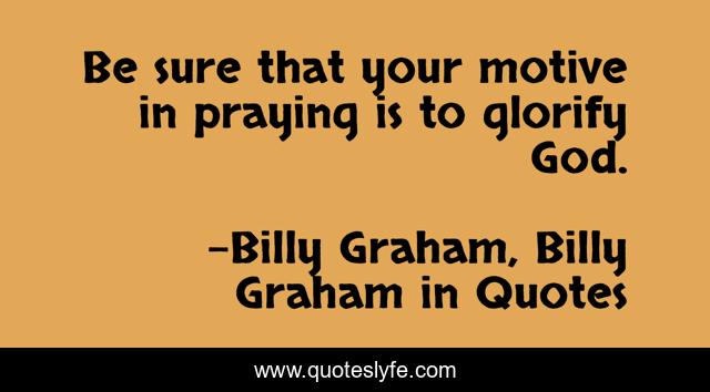 This page presents the quote "Be sure that your motive in praying is to glorify God.". Author of this quote is Billy Graham, Billy Graham in Quotes. This quote is about billy-graham, prayer,.