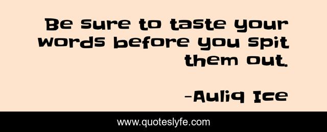 "Auliq Ice Quotes." Quoteslyfe.com, 2025. Sun. 07 Dec. 2025. <https://www.quoteslyfe.com/quote/Be-sure-to-taste-your-words-before-185398>.