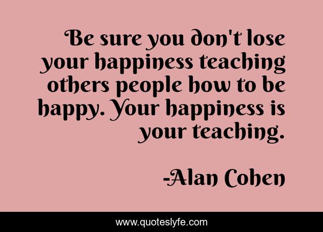 This page presents the quote "Be sure you don't lose your happiness teaching others people how to be happy. Your happiness is your teaching.". Author of this quote is Alan Cohen. This quote is about teaching, happiness,.