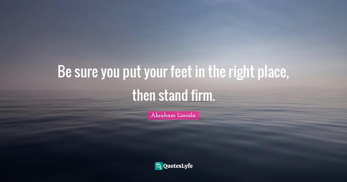 This page presents the quote "Be sure you put your feet in the right place, then stand firm.". Author of this quote is Abraham Lincoln. .