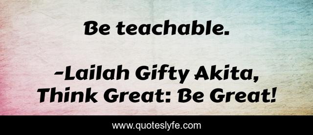 "Lailah Gifty Akita, Think Great: Be Great! Quotes." Quoteslyfe.com, 2025. Sat. 06 Dec. 2025. <https://www.quoteslyfe.com/quote/Be-teachable-116993>.