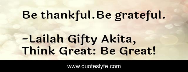 "Lailah Gifty Akita, Think Great: Be Great! Quotes." Quoteslyfe.com, 2025. Mon. 08 Dec. 2025. <https://www.quoteslyfe.com/quote/Be-thankful-Be-grateful-172878>.