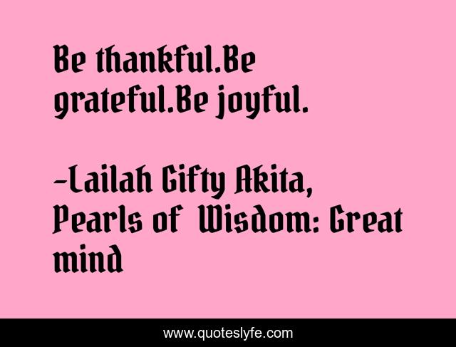 "Lailah Gifty Akita, Pearls of Wisdom: Great mind Quotes." Quoteslyfe.com, 2025. Tue. 09 Dec. 2025. <https://www.quoteslyfe.com/quote/Be-thankful-Be-grateful-Be-joyful-84256>.