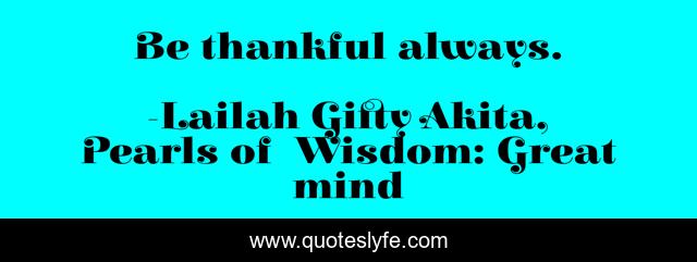 "Lailah Gifty Akita, Pearls of Wisdom: Great mind Quotes." Quoteslyfe.com, 2025. Fri. 05 Dec. 2025. <https://www.quoteslyfe.com/quote/Be-thankful-always-97157>.