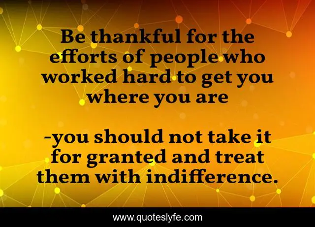 This page presents the quote "Be thankful for the efforts of people who worked hard to get you where you are". Author of this quote is you should not take it for granted and treat them with indifference.. .