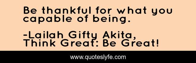 "Lailah Gifty Akita, Think Great: Be Great! Quotes." Quoteslyfe.com, 2025. Fri. 05 Dec. 2025. <https://www.quoteslyfe.com/quote/Be-thankful-for-what-you-capable-of-94914>.