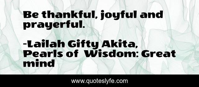 "Lailah Gifty Akita, Pearls of Wisdom: Great mind Quotes." Quoteslyfe.com, 2025. Fri. 05 Dec. 2025. <https://www.quoteslyfe.com/quote/Be-thankful-joyful-and-prayerful-62407>.