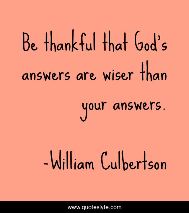 "William Culbertson Quotes." Quoteslyfe.com, 2025. Fri. 05 Dec. 2025. <https://www.quoteslyfe.com/quote/Be-thankful-that-God-s-answers-are-274079>.