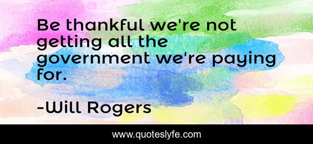 This page presents the quote "Be thankful we're not getting all the government we're paying for.". Author of this quote is Will Rogers. This quote is about rule, government,.
