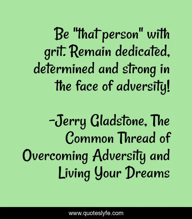 "Jerry Gladstone, The Common Thread of Overcoming Adversity and Living Your Dreams Quotes." Quoteslyfe.com, 2025. Fri. 05 Dec. 2025. <https://www.quoteslyfe.com/quote/Be-that-person-with-grit-Remain-dedicated-83234>.