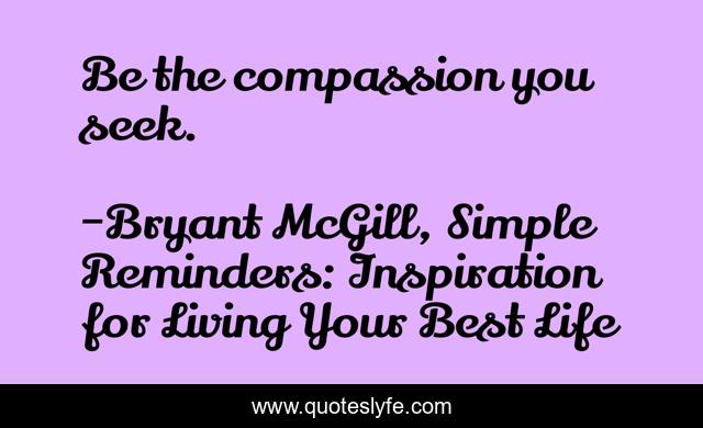 "Bryant McGill, Simple Reminders: Inspiration for Living Your Best Life Quotes." Quoteslyfe.com, 2025. Sat. 06 Dec. 2025. <https://www.quoteslyfe.com/quote/Be-the-compassion-you-seek-247491>.