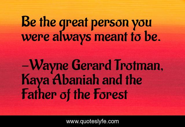 This page presents the quote "Be the great person you were always meant to be.". Author of this quote is Wayne Gerard Trotman, Kaya Abaniah and the Father of the Forest. This quote is about confidence, success, personal-growth, aspiration, quotable, positive-thinking, affirmation, greatness, personal-development,.