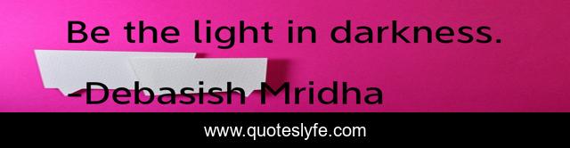 "Debasish Mridha Quotes." Quoteslyfe.com, 2025. Sat. 06 Dec. 2025. <https://www.quoteslyfe.com/quote/Be-the-light-in-darkness-68669>.