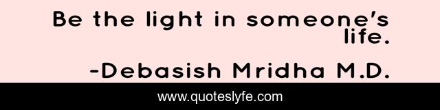 "Debasish Mridha M.D. Quotes." Quoteslyfe.com, 2025. Mon. 08 Dec. 2025. <https://www.quoteslyfe.com/quote/Be-the-light-in-someone-s-life-118574>.