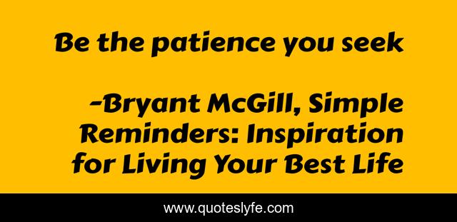 "Bryant McGill, Simple Reminders: Inspiration for Living Your Best Life Quotes." Quoteslyfe.com, 2025. Fri. 05 Dec. 2025. <https://www.quoteslyfe.com/quote/Be-the-patience-you-seek-193130>.