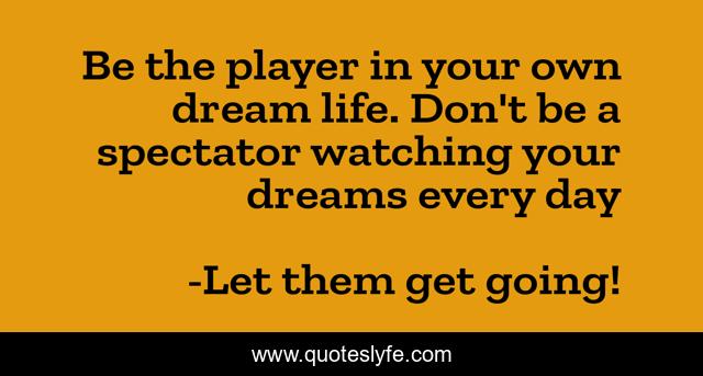 This page presents the quote "Be the player in your own dream life. Don't be a spectator watching your dreams every day". Author of this quote is Let them get going!. This quote is about israelmore ayivor, the great hand book of quotes,.