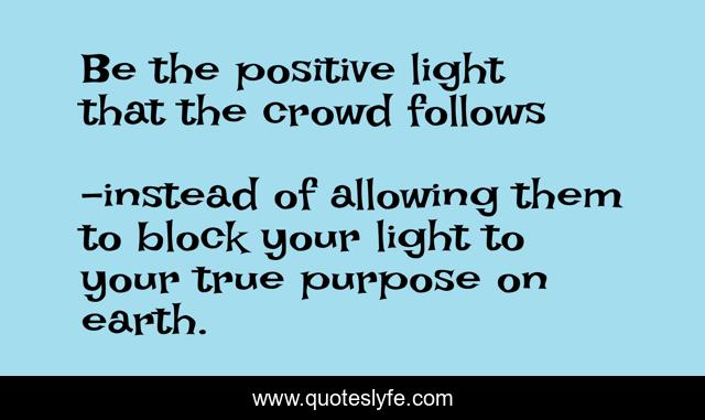 This page presents the quote "Be the positive light that the crowd follows". Author of this quote is instead of allowing them to block your light to your true purpose on earth.. .