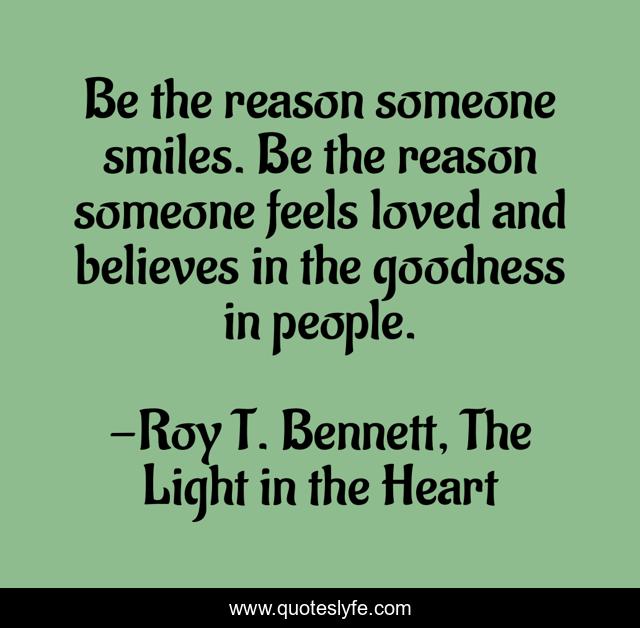 "Roy T. Bennett, The Light in the Heart Quotes." Quoteslyfe.com, 2025. Fri. 05 Dec. 2025. <https://www.quoteslyfe.com/quote/Be-the-reason-someone-smiles-Be-the-287>.
