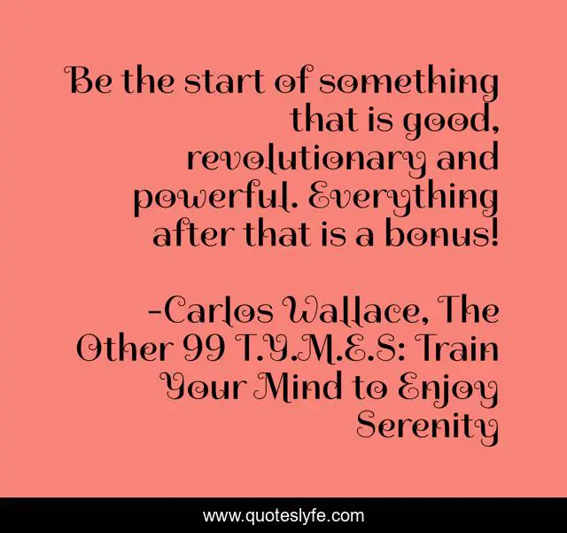 "Carlos Wallace, The Other 99 T.Y.M.E.S: Train Your Mind to Enjoy Serenity Quotes." Quoteslyfe.com, 2025. Sat. 06 Dec. 2025. <https://www.quoteslyfe.com/quote/Be-the-start-of-something-that-is-64035>.