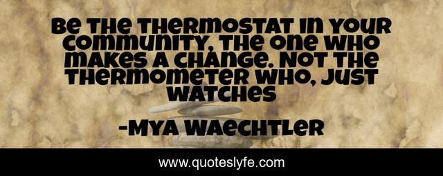 This page presents the quote "Be the thermostat in your community, the one who makes a change. Not the thermometer who, just watches". Author of this quote is Mya Waechtler. This quote is about good-change, change, community,.