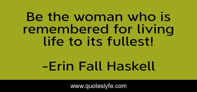 This page presents the quote "Be the woman who is remembered for living life to its fullest!". Author of this quote is Erin Fall Haskell. This quote is about miracles, empower-women, empowerment, magic, law-of-attraction, energy, the-secret, spirituality, clarity,.