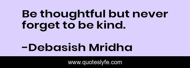 This page presents the quote "Be thoughtful but never forget to be kind.". Author of this quote is Debasish Mridha. This quote is about be-thoughtful, philosophy, debasish-mridha, be-kind, quotes, inspirational, enthusiasm, debasish-mridha-m-d,.