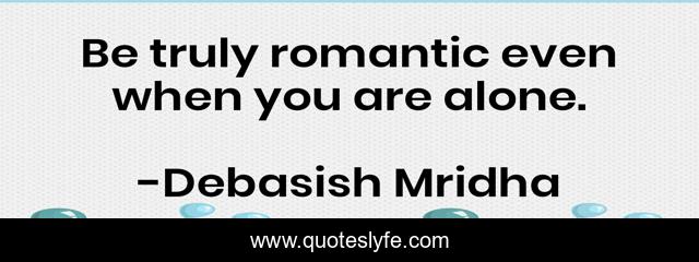 This page presents the quote "Be truly romantic even when you are alone.". Author of this quote is Debasish Mridha. This quote is about philosophy, romantic, when-you-are-alone, debasish-mridha, quotes, be-truly-romantic, inspirational, enthusiasm, debasish-mridha-m-d,.