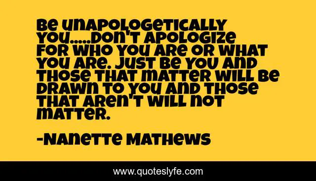 "Nanette Mathews Quotes." Quoteslyfe.com, 2025. Fri. 05 Dec. 2025. <https://www.quoteslyfe.com/quote/Be-unapologetically-you-Don-t-apologize-for-147574>.