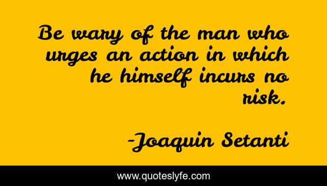 This page presents the quote "Be wary of the man who urges an action in which he himself incurs no risk.". Author of this quote is Joaquin Setanti. .