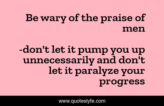 "don't let it pump you up unnecessarily and don't let it paralyze your progress Quotes." Quoteslyfe.com, 2025. Sat. 06 Dec. 2025. <https://www.quoteslyfe.com/quote/Be-wary-of-the-praise-of-men-186342>.
