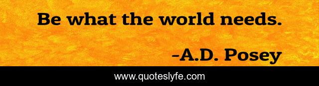 "A.D. Posey Quotes." Quoteslyfe.com, 2025. Fri. 05 Dec. 2025. <https://www.quoteslyfe.com/quote/Be-what-the-world-needs-89585>.