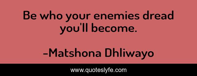 "Matshona Dhliwayo Quotes." Quoteslyfe.com, 2025. Fri. 05 Dec. 2025. <https://www.quoteslyfe.com/quote/Be-who-your-enemies-dread-you-ll-83084>.