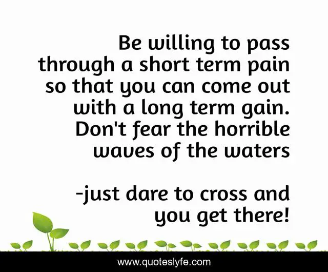 This page presents the quote "Be willing to pass through a short term pain so that you can come out with a long term gain. Don't fear the horrible waves of the waters". Author of this quote is just dare to cross and you get there!. This quote is about daily drive 365, israelmore ayivor,.