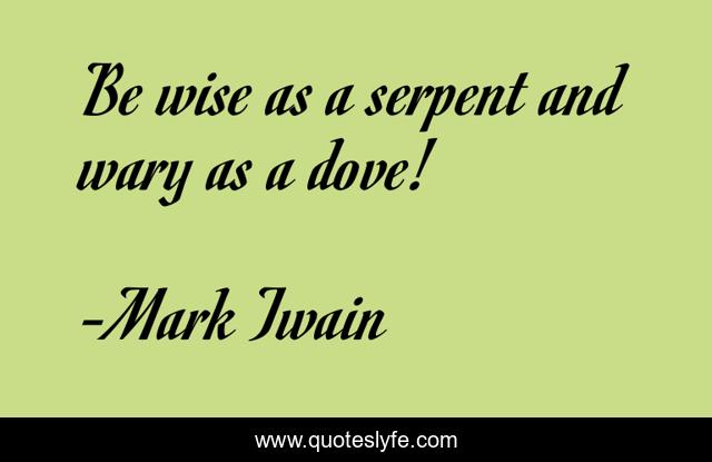 This page presents the quote "Be wise as a serpent and wary as a dove!". Author of this quote is Mark Twain. .