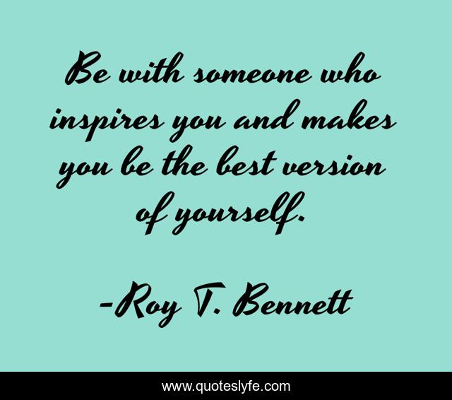This page presents the quote "Be with someone who inspires you and makes you be the best version of yourself.". Author of this quote is Roy T. Bennett. This quote is about motivation, inspire, optimistic, inspirational-life, life-and-living, living, inspiring, positive, positive-thinking,.
