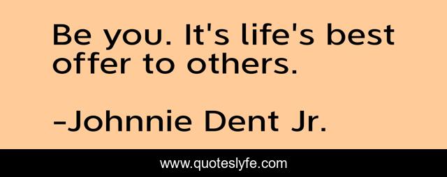 This page presents the quote "Be you. It's life's best offer to others.". Author of this quote is Johnnie Dent Jr.. This quote is about awesomeness, success, be-yourself, living-the-best-life, inspirational, enthusiasm, living-the-dream,.