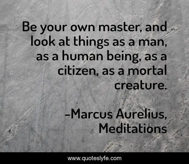This page presents the quote "Be your own master, and look at things as a man, as a human being, as a citizen, as a mortal creature.". Author of this quote is Marcus Aurelius, Meditations. This quote is about philosophy-of-life, philosophy, morality-without-religion,.