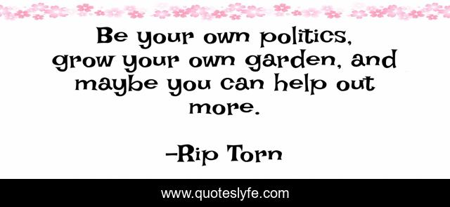 This page presents the quote "Be your own politics, grow your own garden, and maybe you can help out more.". Author of this quote is Rip Torn. This quote is about grow, help, garden,.