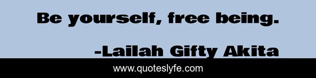 This page presents the quote "Be yourself, free being.". Author of this quote is Lailah Gifty Akita. This quote is about be, inspiring, being, wise-words, free, yourself,.