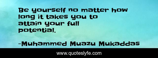 This page presents the quote "Be yourself no matter how long it takes you to attain your full potential.". Author of this quote is Muhammed Muazu Mukaddas. This quote is about positive, confidence, motivational, optimistic,.