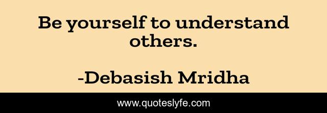 This page presents the quote "Be yourself to understand others.". Author of this quote is Debasish Mridha. This quote is about life, love, knowledge, inspirational, intelligence, philosophy, wisdom, quotes, affection,.
