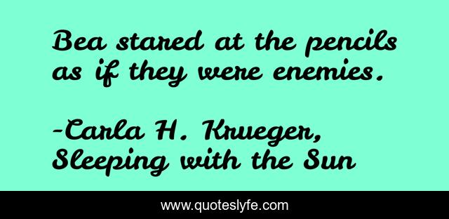 "Carla H. Krueger, Sleeping with the Sun Quotes." Quoteslyfe.com, 2025. Fri. 05 Dec. 2025. <https://www.quoteslyfe.com/quote/Bea-stared-at-the-pencils-as-if-108478>.