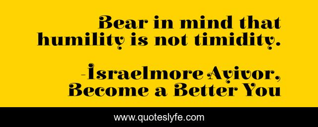 This page presents the quote "Bear in mind that humility is not timidity.". Author of this quote is Israelmore Ayivor, Become a Better You. This quote is about motivations, food-for-thought, afraid, timidity, positive, motivational, confidence, inspirations, optimistic,.