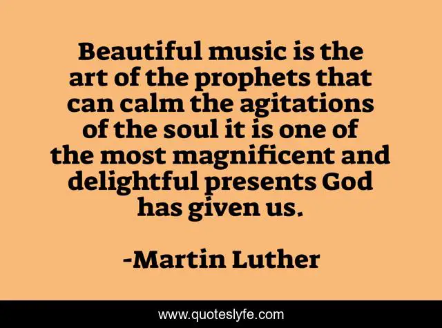 This page presents the quote "Beautiful music is the art of the prophets that can calm the agitations of the soul it is one of the most magnificent and delightful presents God has given us.". Author of this quote is Martin Luther. This quote is about beautiful, god, art,.