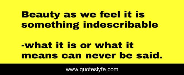 This page presents the quote "Beauty as we feel it is something indescribable". Author of this quote is what it is or what it means can never be said.. .